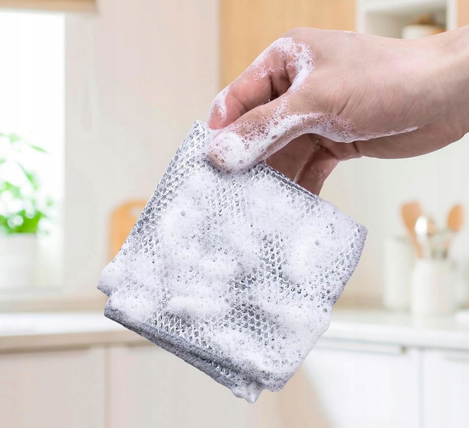 Ściereczki wykonane z drobnej siatki o strukturze drucianej, która skutecznie usuwa brud, tłuszcz i resztki jedzenia.